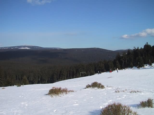 Kleiner Sonnenberg: Blick vom Skihang auf die höchsten Harzberge